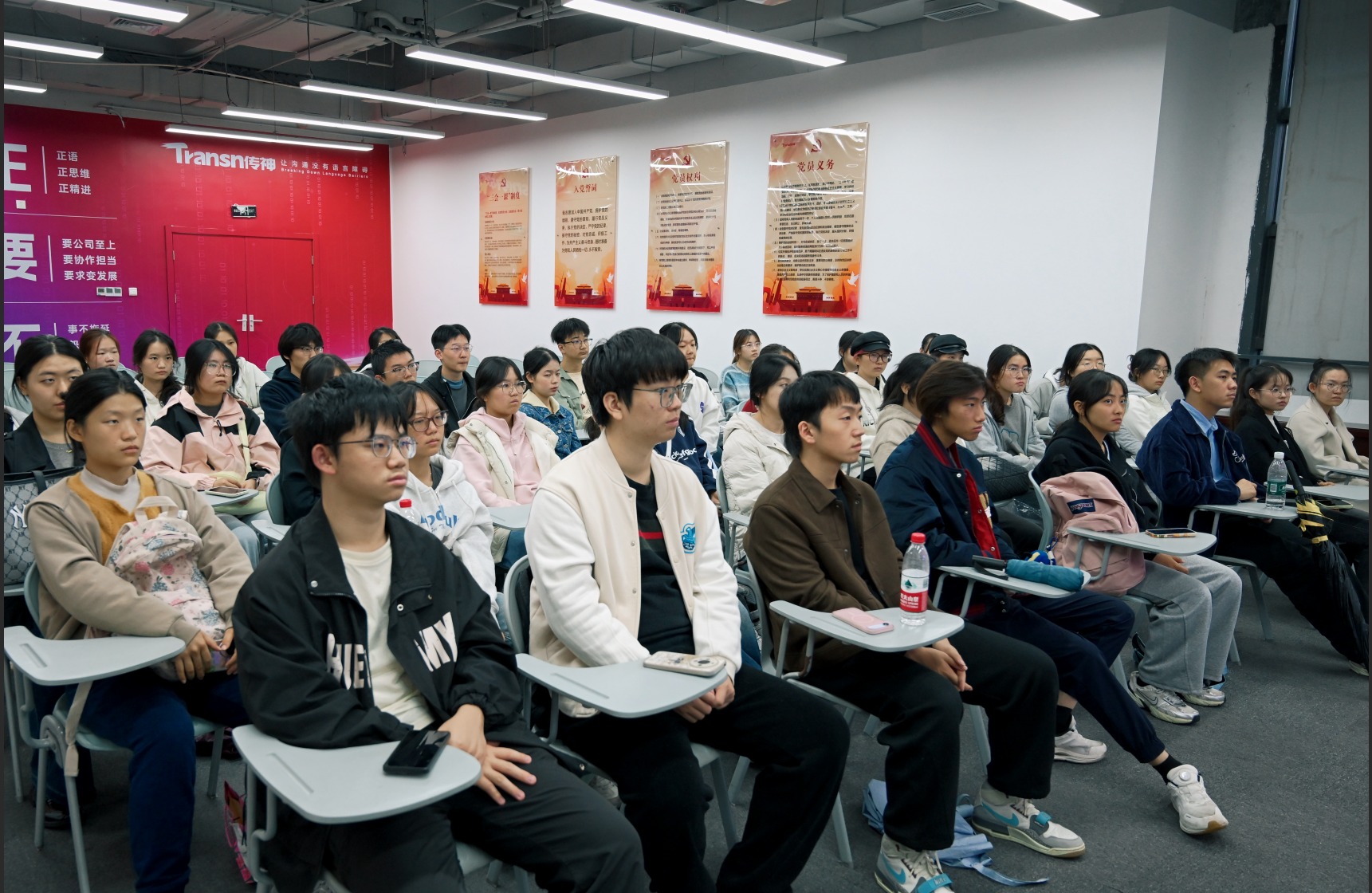 在会议厅,传神培训讲师围绕“语言数据应用”主题,结合跨境与多语言场景下的实战案例,向同学们系统讲解了语言能力、行业认知与技术素养相结合的复合型人才“语言工程师”的能力模型,为同学们未来的职业发展提供了清晰的路径指引。